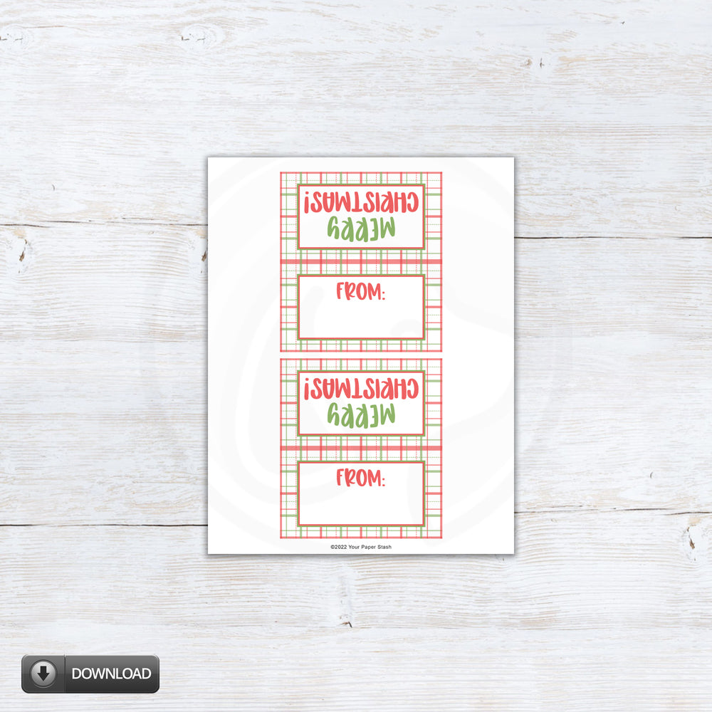 Merry Christmas Red Green Plaid Treat Candy Cookie Bag Toppers