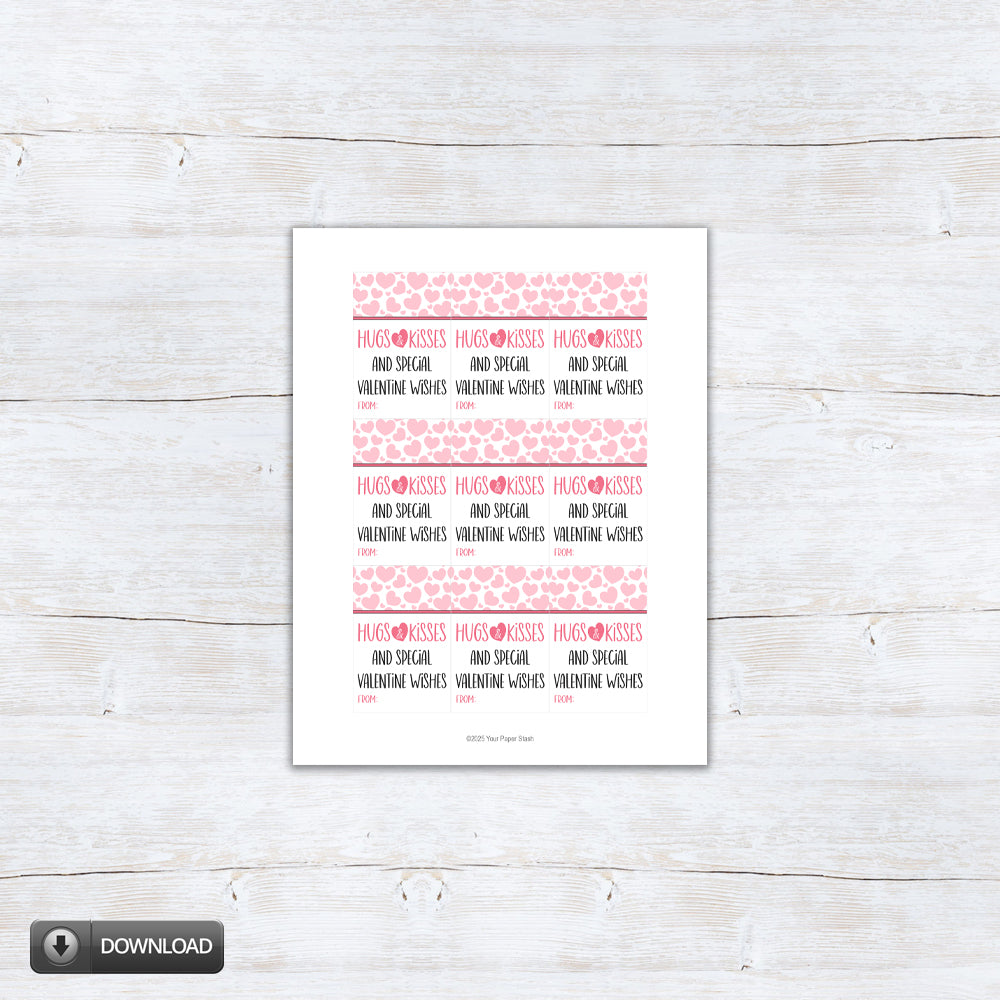 Pink Valentine's Day Hugs and Kisses Printable Tags