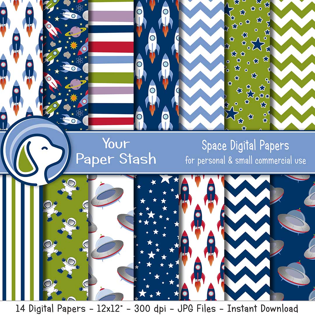 Space Theme Digital Scrapbook Papers & Background Patterns